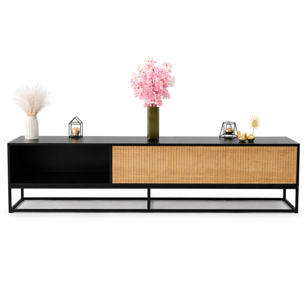 חלל פנימי עמוק המתאים לאחסון ציוד מדיה, ספרים ואביזרים שונים.
