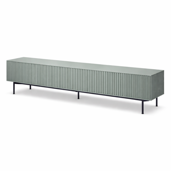 מזנון גבריאלה משלב עיצוב מודרני נקי עם טקסטורה אנכית עשירה לכל אורכו. הגוון הירוק המעודן מעניק תחושת רוגע ואלגנטיות, בעוד בסיס המתכת השחור יוצר קונטרסט מדויק ומדגיש את הקווים הארוכים והאופקיים של הפריט. זהו מזנון שמשדר מינימליזם יוקרתי עם עומק עיצובי מובהק.