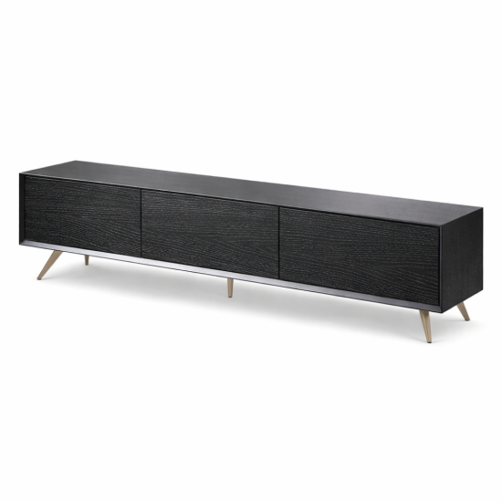 גוף המזנון עשוי עץ איכותי בגימור שחור מט עם טקסטורת עץ טבעית בולטת.